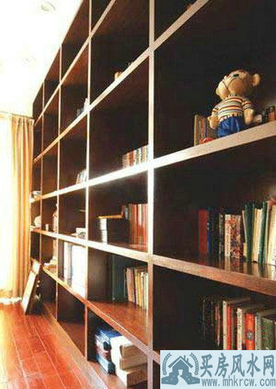 面积充裕的居室中,可以独立布置一间书房,面积较小的居室可以辟出一个区域作为学习和工作的地方,可用书橱隔断,也可用柜子、布幔等隔开。