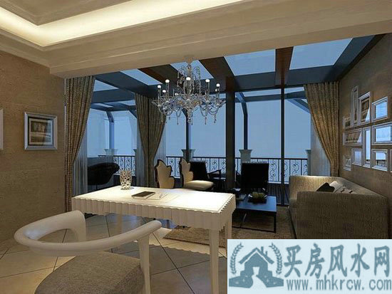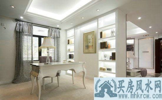 书房灯光的强弱在对人的影响方面是很重要的。柔和明亮的灯光宜于视力,而强烈的灯光或彩光则会扰乱视线,会引起房主精神不定,思想分散,不宜使用。所以,不提议在书房内用那些放发出强烈的灯光或彩光的灯,最好选用一些比较柔和明亮的灯。