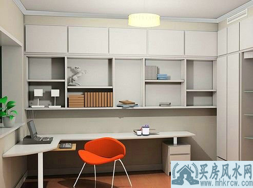 书房、书桌东西摆放不能对着大门,也就是说你站在书房门口往前往后看,在你眼角直线范围内不能摆放东西,否则易犯门冲,会导致书房的阅读或者工作者注意力不集中,事业或者学业不佳。