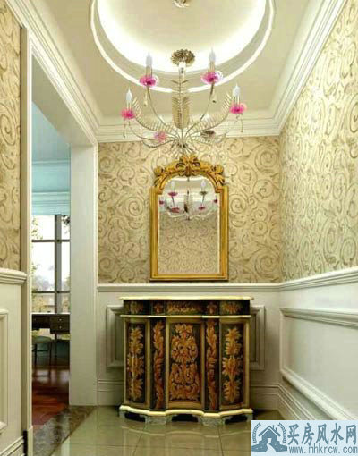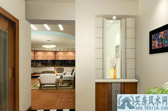 客厅玄关处凌乱昏暗,整个居室都会显得挤迫压抑。之上可摆一些风水物品,如麒麟之类。